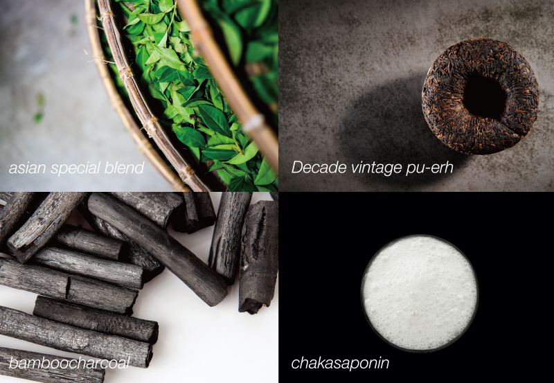 原材料:茶 [半発酵茶・重発酵茶](台湾)、プーアル、竹炭、茶花サポニン