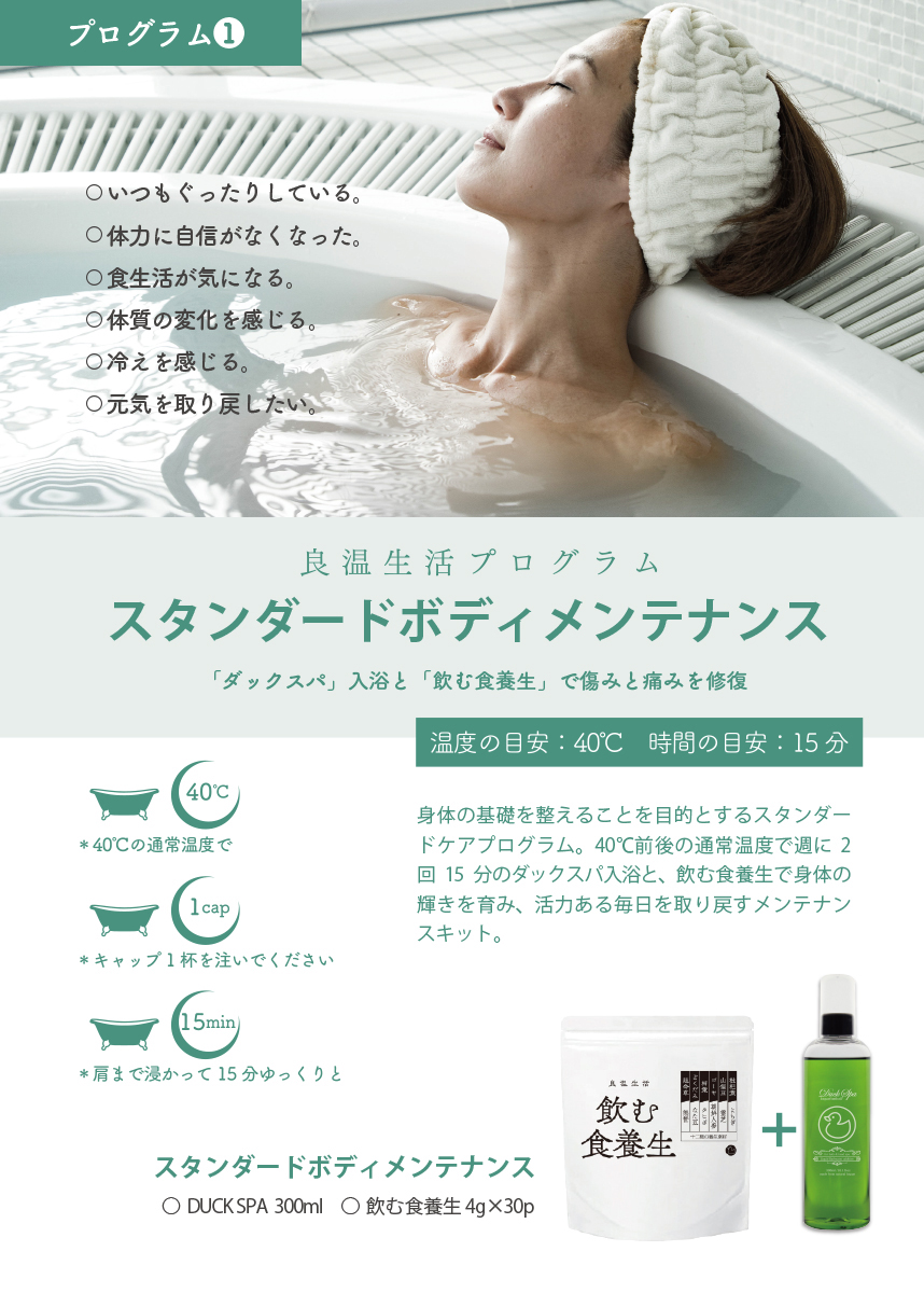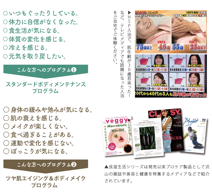 これまでのプロケアの概念では、専門とする分野における最も上質なケアを提供することが価値とされてきました。しかしそれは「表面的に改善されたように見せる」というほんの一部分にすぎません。本当のケアとは、表面的な改善にととめず、原因を改善するケア・施術をすること。私たちは、このケアの本質に目を向けることがこれからのプロケアの在り方だと考えます。代替医学の視点から開発したインナーコスメティックス「良温生活」シリーズは、全身クリーム、ローション、スパオイルなど様々な仕様、使用方法を通じてユーザーの求める本質に視点を置くプロフェッショナルの現場で支持を受けています。新たにラインナップとして加わったヘルスケアティーシリーズと一緒に使用することで、より身体の循環を促す新しいプロケアプログラムを自宅で体験することができます。