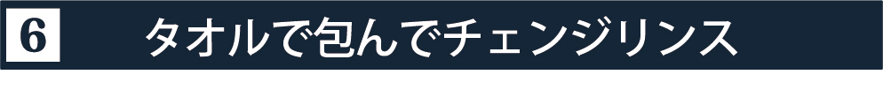 タオルで頭全体を包み込み、タオルの上からチェンジリンスを行います。タオルを使って全体に繰り返しかけて成分をくまなく浸透させていくのがポイントです。