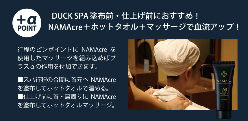 通常は、DUCK SPAの成分で髪がしっとりとしますが、毛先の傷みが強い場合や、軋みが気になる場合などにはトリートメントを行ってください。