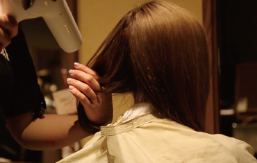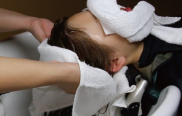 お流し〜タオルドライの後、セット面でブローで仕上げてヘッドスパメニューの行程が完了です。