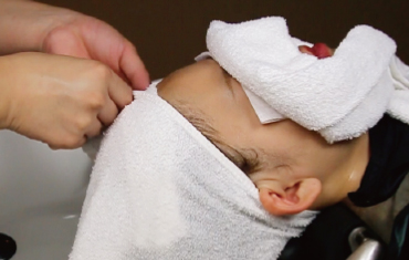 タオルで髪・地肌の水気を拭き取ります。特に地肌の水気はしっかりと取っておきます。